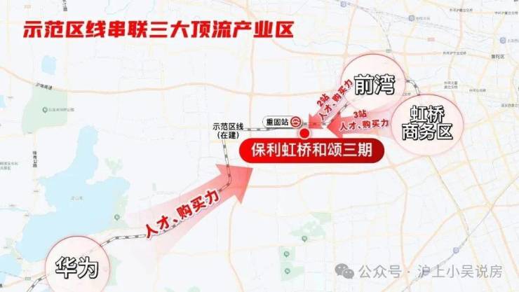 另一方面,示范区线串联 长三角一体化和 大虹桥两大国家级战略;同时又紧密 华为、前湾总部办公、虹桥商务区三大顶流产业,含金量之高可见一斑。