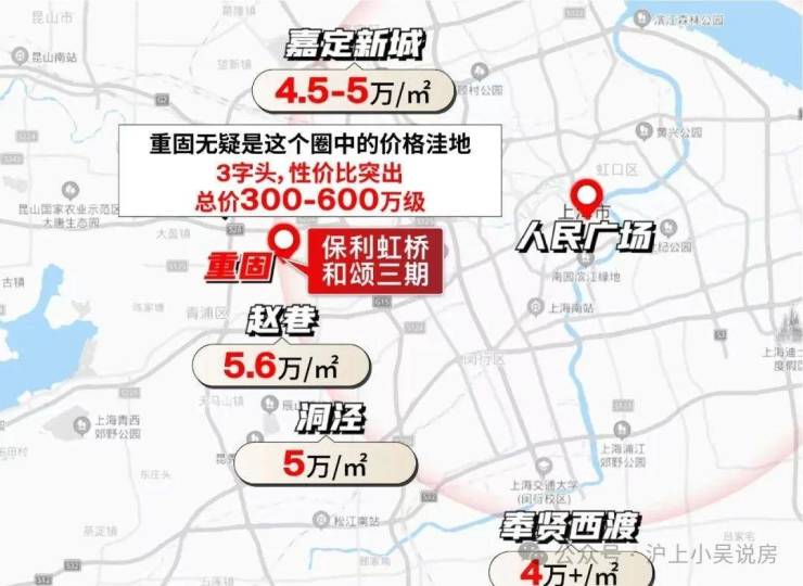 若以市中心为圆心,重固与赵巷、洞泾处于同一半径范围内,但后者房价已达5-5.6万/㎡, 而重固仅3字头。 保利虹桥和颂·parkside售楼处电话:400-8894-638