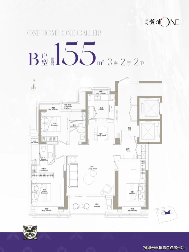 南北通透+一体化家庭核心:约12米南向面宽,户型中央整合LDKB共享空间,全明设计更为生活的进入准备好了阳光与风;