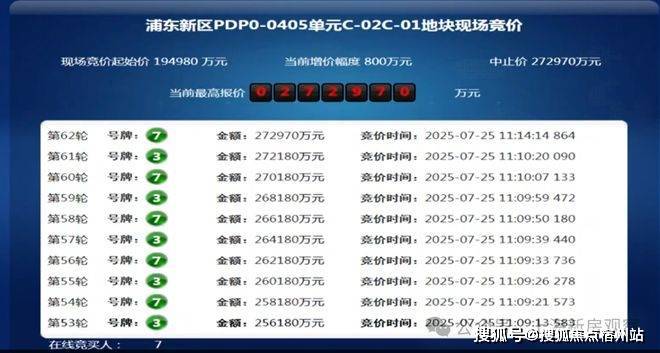 7月25日,上海2025年六批次土拍中浦东唐镇地块,最终由招商蛇口&中旅投资以中止价27.297亿元+商品住宅装修标准不低于4500元/㎡(集采价)+公共服务设施200㎡(计容)+高端人才住房配建比例0.7%竞得地块,成交楼面价52360元/㎡,溢价率40.00%!
