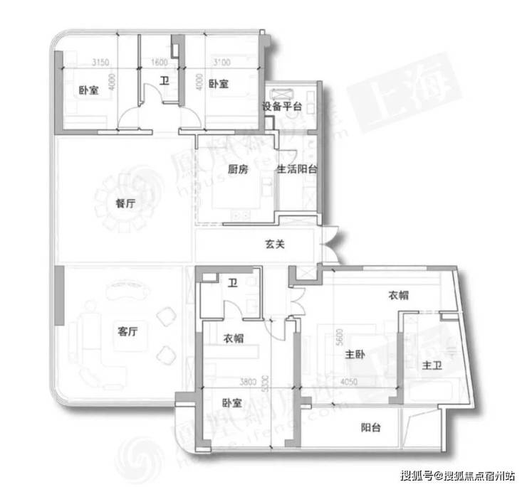 建面约198㎡4室2厅3卫