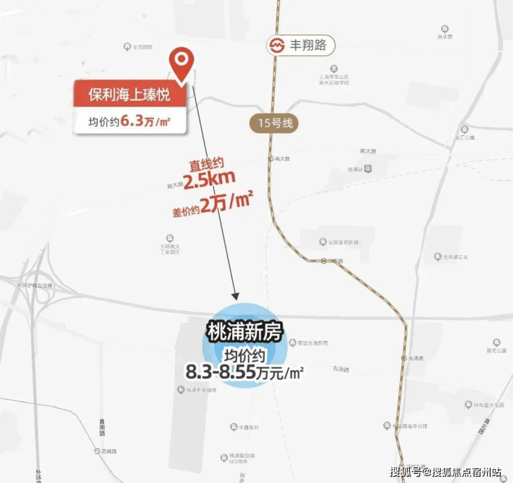 相较于相邻的桃浦板块,2站地铁的距离,保利海上瑧悦倒挂约2.25W/㎡,同样100㎡的房子,总价直接减少225W,北中环置业名副其实的高性价比首选。