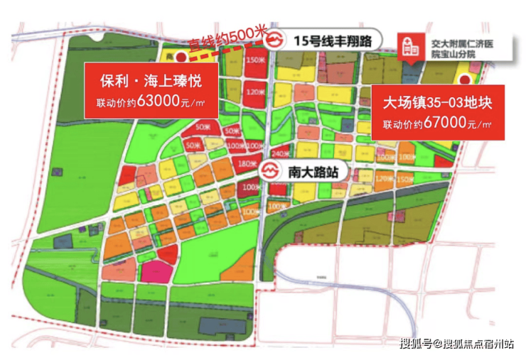 在今年的第二批次土拍中,位于上海北中环带南大智慧城片区大场镇35-03地块,经过18家开发商参与竞拍的激烈竞争,最终以6.7万/㎡的联动价成交!这已经比今年首批次保利拿下的宝山区大场镇W12-1301单元05-04地块,即保利·海上瑧悦项目上涨4000元/㎡!