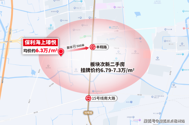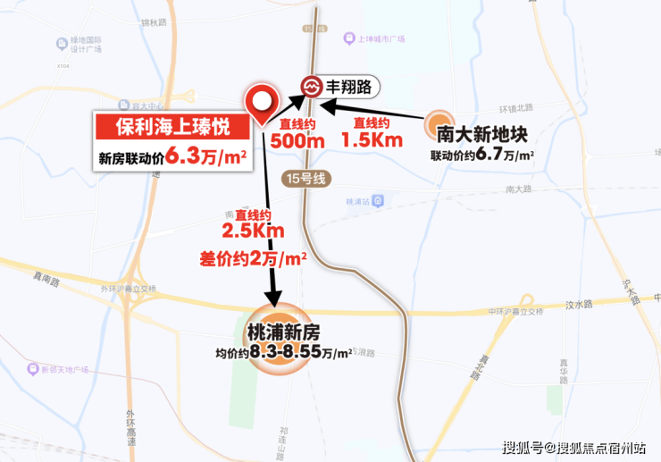 从同价格段的项目看,保利·海上瑧悦,地段更好距离市区更新!从地图上就能明显的感受到,6字头真地铁房,保利·海上瑧悦的区位要明显优越得多!联动价约6.3万/㎡的保利海上瑧悦,直线距离中环线只有约3.2km,与南山前湾拾缦、招商虹桥公馆三期、颛桥紫薇花园等项目到市区的距离相近,价格上也更具有优势!