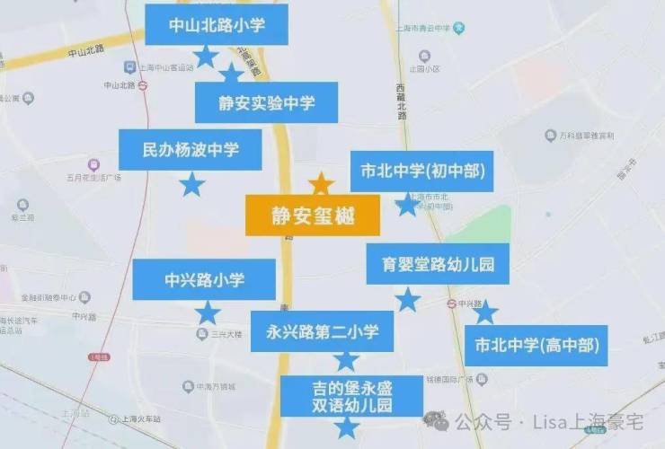 幼儿园:育婴堂幼儿园、金鹭幼儿园、吉的堡永盛双语幼儿园;小学:静安区永兴路第二小学、中山北路小学、静安区闸北第三中心小学、民办杨波外国语小学;中学:市北初级中学(一梯队)、市北中学高中部、民办扬波中学、青云中学、静安区实验中学。☑️☑️静安玺樾售楼处电话:400-1183-605☑️☑️
