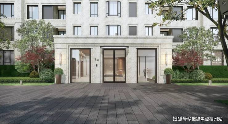 古北99的建筑立面在采用天然黄金麻石材肌理搭配灵动的线条,柔化了石材的坚硬质地,端庄典雅的同时更显时尚。