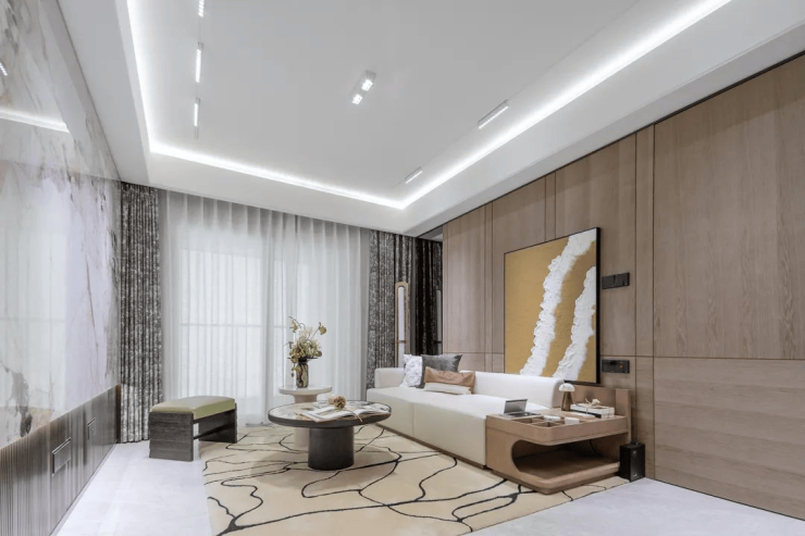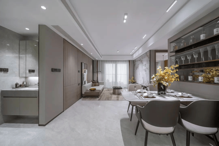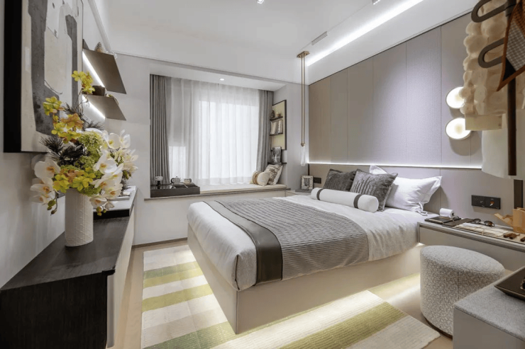 华发作为国企,以匠心精神打造华发虹桥四季,在产品品质上处处彰显着用心与诚意。项目采用现代简约风格的外立面设计,大面积玻璃与铝板相结合,质感十足,远远望去,尽显高端大气。这种设计不仅美观大方,还具备良好的耐脏性与抗老化性能,确保多年后依然如新,为二手房溢价提供有力保障。