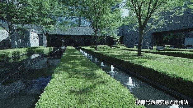 并通过跌水、涌泉和镜面水景等水景组合,将内部水景与外部水岸紧密相连。