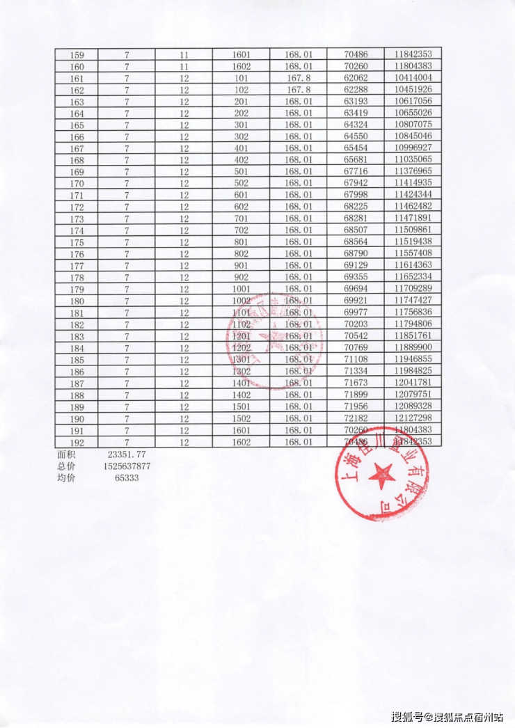 项目一房一价表▼