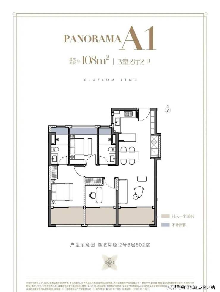 项目108户型,实际能呈现市面约120㎡的空间感;该户型均价约12.65万/㎡,折算实得率,真实建面单价在11.5万/㎡左右。