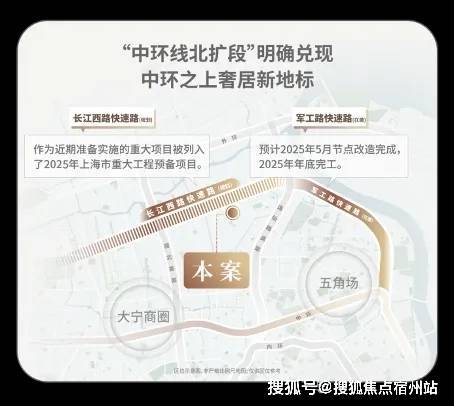 军工路快速路25年开工,长江西路快速路规划26年开工,快速链通城心,随着中环北抬的政策落地,淞南将正式进入中环时间。未来经逸仙高架,进入南北高架、内环高 ✅✅ 招商序售楼处电话:400-9975-759✅✅架、中环高架,可快速链通南北上海。