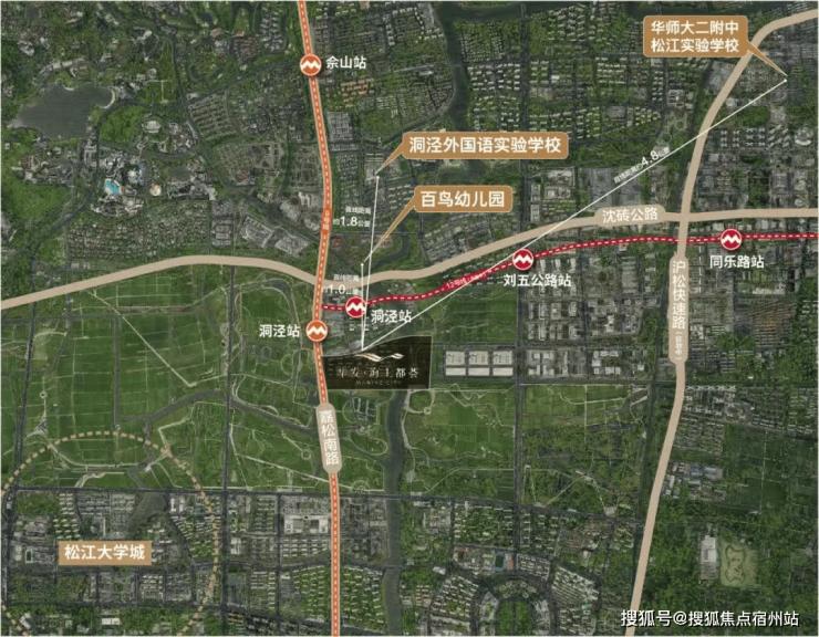 对改善家庭而言,教育往往是一票否决项。项目周边集中了更高起点的教育资源:一侧是华师大二附中体系、华二外国语等TOP级学校,从小学到中学、高中,书香氛围浓厚;另一侧是松江大学城,高校群带来的,不仅是人文气息,也是未来科研与高知圈层的重要来源。