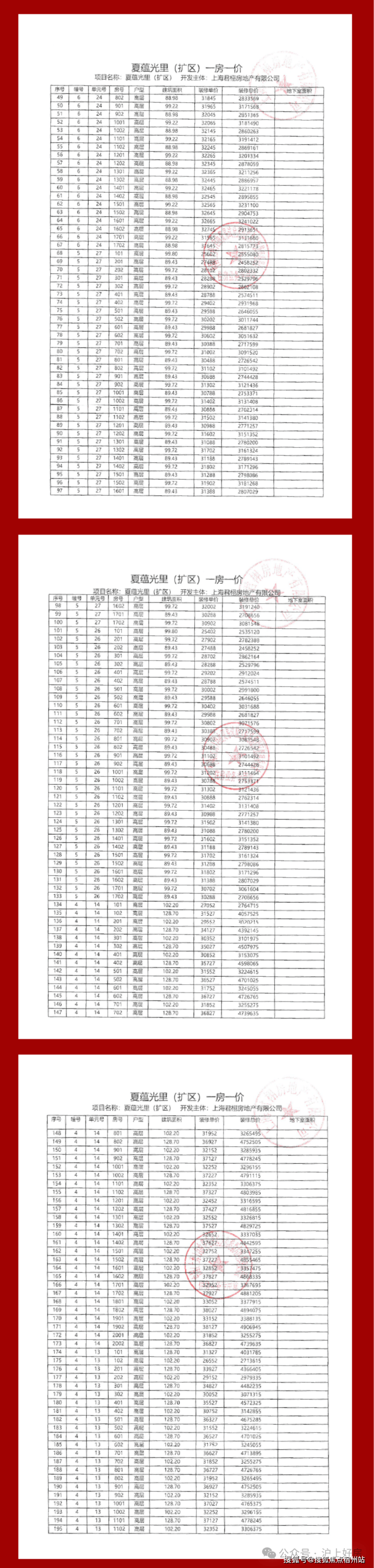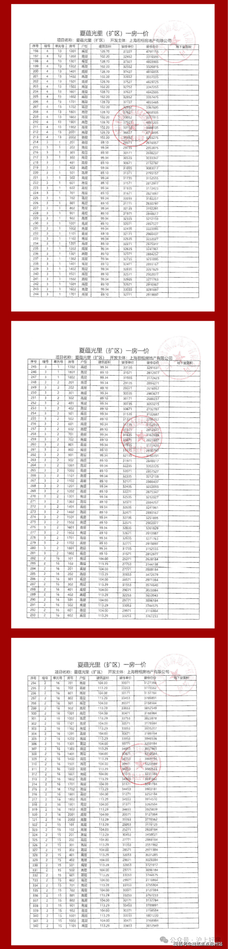 项目一房一价表