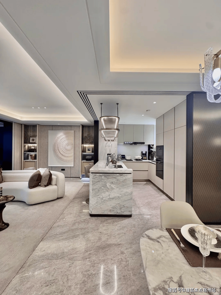 室内设计同样贯彻着“璞而不喧”的理念。空间布局注重通风采光与私密性,部分户型设有阔绰的南向横厅。选材上,大量运用石材、木饰面与皮革等天然材质,触感温润,质感细腻。厨房配备了嘉格纳(Gaggenau)、威乃达(Veneta Cucine)等顶级厨电品牌,卫浴则选用劳芬(Laufen)、当代(Dornbracht)等一线品牌,将奢华融入日常生活的每一个细节。