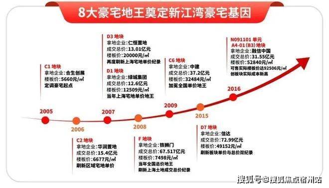自2005年区域土地市场启动以来,新江湾城便拉开了“地王”迭出的序幕,十年间诞生了八个地王项目,总价与单价纪录不断被刷新,深刻镌刻了板块不可撼动的高端地位。