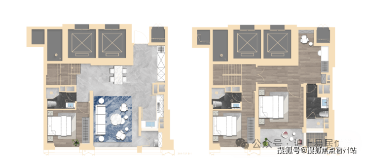 尤其主卧星级套房,配置独立衣帽间、书房,奢华主卫四分离,双台盆+淋浴区+大浴缸+智能马桶,私密性&奢适度无敌;