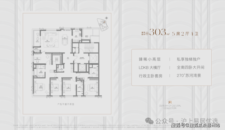 黄浦内环内、人民广场板块,上海建工集团“正黄浦”纯豪宅项目——【海玥·黄浦源】三期项目8、2号栋楼涵盖建面约94-402㎡多种户型,主力户型303平五房。