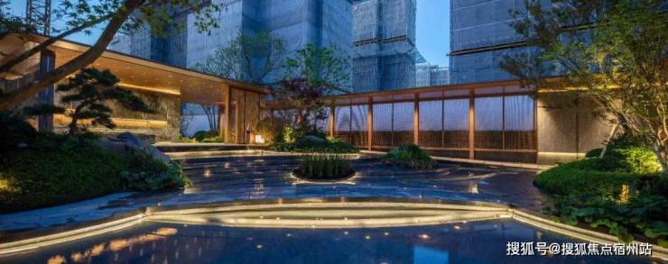 聆星客厅前方种植了松界王者—— 日本黑松,约4000万+的顶豪融创外滩壹号院的社区内,也有一颗同款;