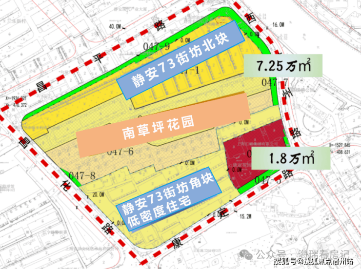 而静安73街坊的南块是低密度住宅部分,将兴建联排别墅,共1.8万㎡,一共77套。