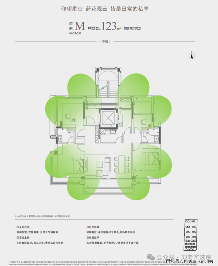 属实是把改善户型的格局打开了——这个面积段四房不稀奇,但能把独立前厅、全景阳台、花池、四叶草户型这些“豪宅标配”全都塞进去,放眼整个市场都太狠了。