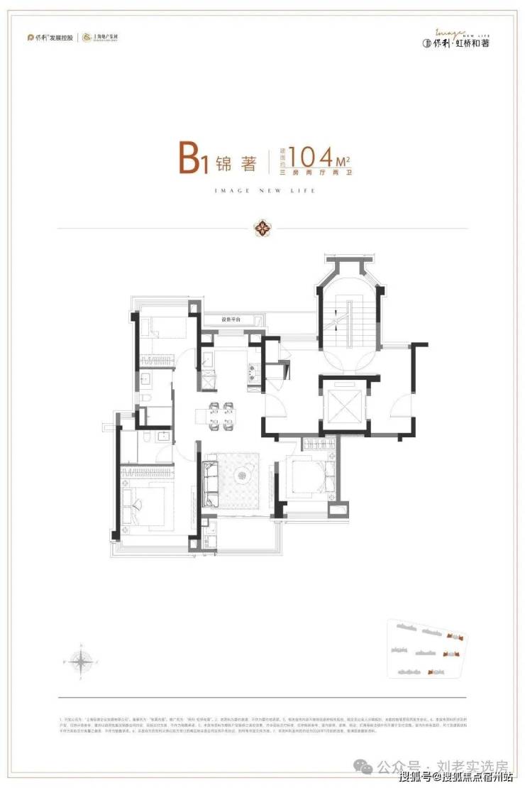 但保利虹桥和著的建面约104㎡3房2卫,却很好的解决了以上所有问题:
