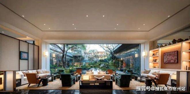 接待区与洽谈区采用超尺度整块玻璃幕墙,消融室内外界限,将下沉庭院与后场景观引入室内,使整个空间成为自然的延伸。