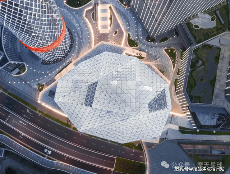 而紧挨着的长滩音乐厅,拥有1,027个席位,设计取意“东海龙王水晶宫”。白天看,建筑像块棱角分明的水晶,到了晚上才真正“活”过来——灯光从无数孔洞透出,整座建筑如钻石般在夜色中发光。