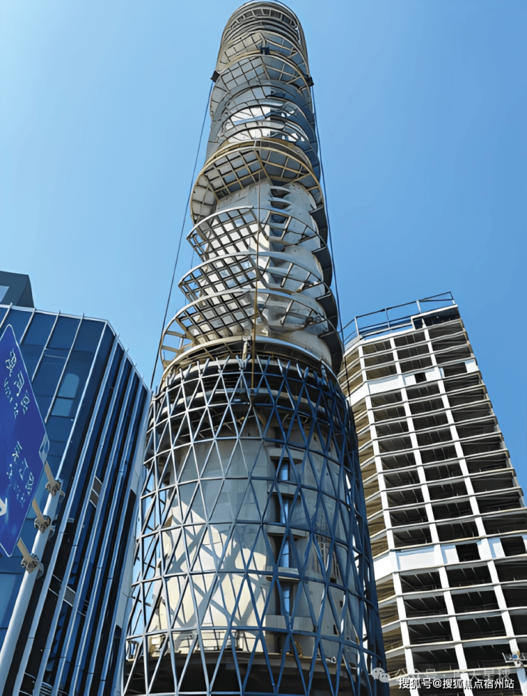 为了抗住江边的大风,整座塔用了加厚的铝板和内部钢架支撑,外圈无柱,全靠地面预制、高空焊接,一圈幕墙由72块三角板拼成,每一块都得在高空精准对齐,实属不易。