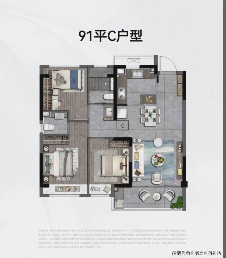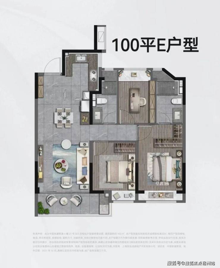 建筑面积约100㎡样板间实拍示意图