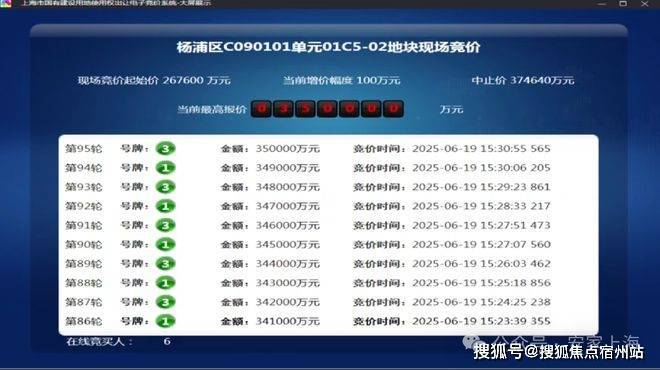 6月19日,2025年五批次土拍,保利发展经过95轮竞价摘得杨浦东外滩01C5-02地块(即保利外滩曜) ,成交总价350000万元,楼板价95530元/㎡,溢价率30.79%。