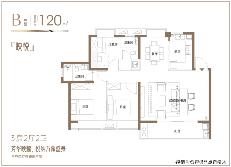 同样是设计水准一流的神户型,做到了三开间朝南+主卧套房+三飘窗+南向观景大阳台,空间利用率以及营造的舒适度都保持在较高水准。