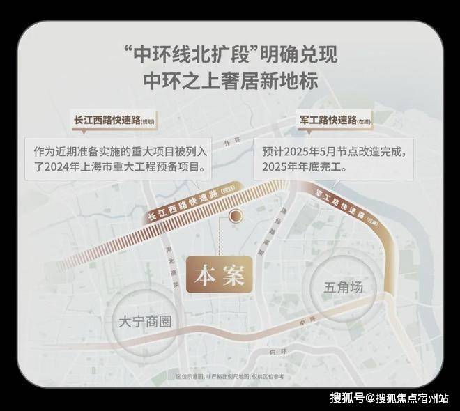 作为上海城市更新的重大规划,“中环北抬”通过延伸中环线北部三条快速路——军工路、长江西路、沪太路相互连接,形成一条全新的交通动脉,组建成为新的“中环”。
