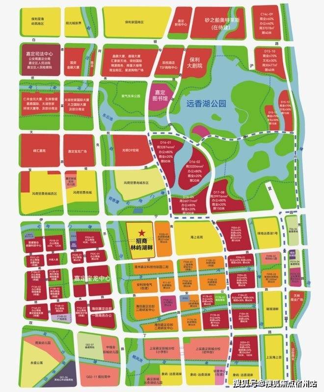 嘉定新城远香湖CAZ规划红线内,这是五个新城目前仅有的官宣的中央活动区。