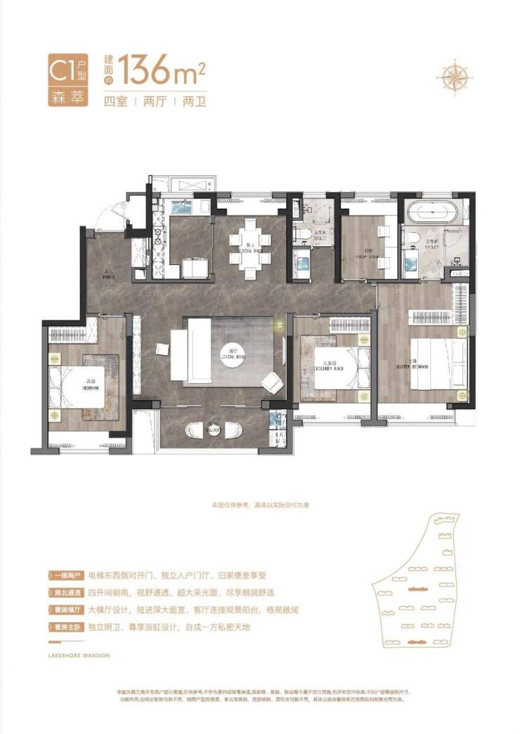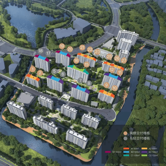 项目目前在售建面约90-136㎡3-4房,最新户型图如下:
