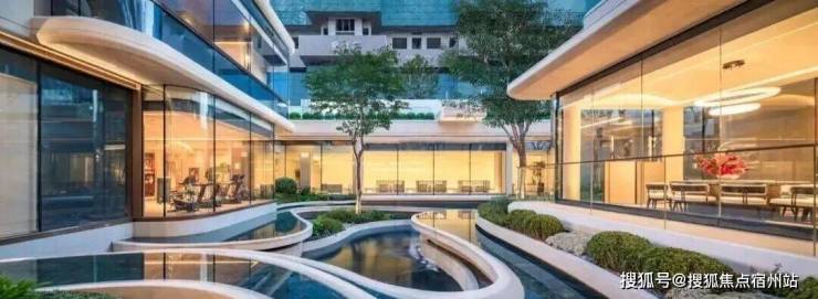 下沉式庭院,通过垂直景墙、悬浮观景台与叠水景观的立体交织,实现移步换景的视觉效果,也与会所空间形成无界交互。