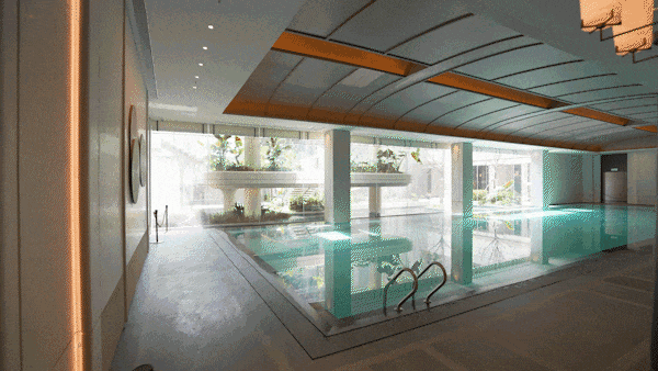 【会所配置:私享无界的多元空间 】项目会所面积约1500平,架空层面积约2500平,涵盖恒温泳池、健身房、室内高尔夫、私宴厅、棋牌室等多元空间,恒温泳池更是结合了海派穹顶与俄罗斯Adle 酒店的设计理念,将典雅与现代融合的恰如其分,会所空间从公共区域到私享区域皆定制有繁花四季场景,以繁花主体引导四季流转,致敬上海的时代新貌。