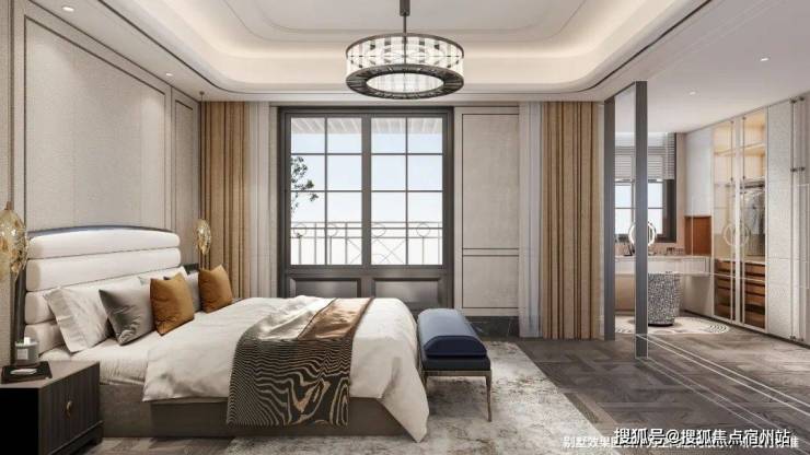 套房包含独立卫浴、男女主人各有衣帽间,动线私密,符合高端改善对主卧“酒店式体验”的需求。