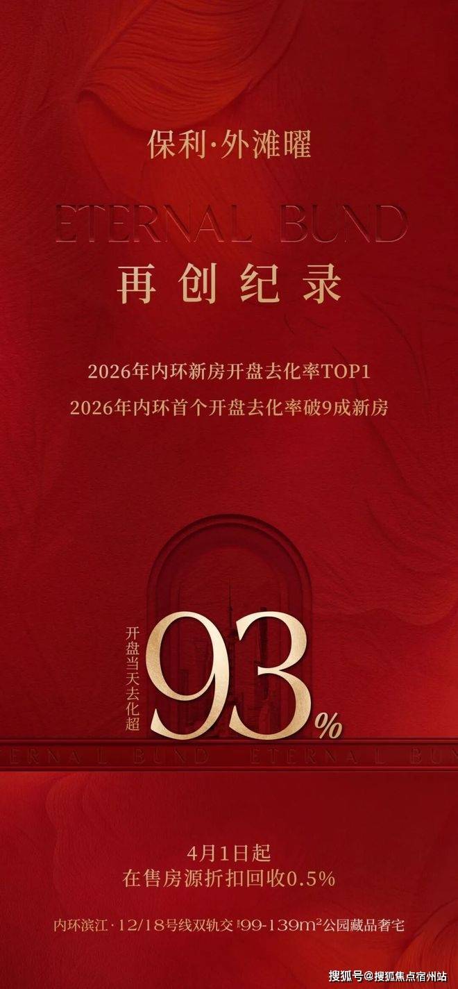 3月27日正式开盘,二批次去化超93%,成为内环首个开盘去化率破9成的新房,再创纪录,问鼎2026年内环新房开盘去化率TOP1,成为内环滨江红盘领跑者。据最新消息,项目4月1日以后在售房源优惠回收0.5%