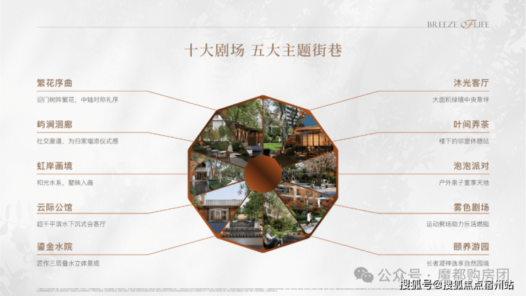 项目利用滨水环绕的特点,规划有 “十大剧场、五大主题街巷” 的景观概念,为业主带来尊崇感、仪式感兼备的归家体验。