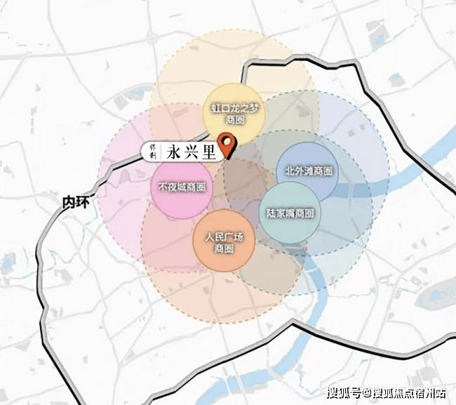 约3.5KM(百度直线距离)内苏河湾、人民广场、外滩、陆家嘴、新天地、四川北路、北外滩、虹口龙之梦、大宁商圈,中兴路板块约3万方公园社交型商业(规划)环绕,多元业态形成精致、时尚、生态融合的活力街区。