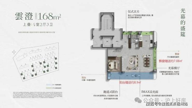 除了 约9.8米的跑道阳台 、 4+1室的格局 、 约270°的IMAX超级采光面 外,这个户型拥有两个最独特的优势: