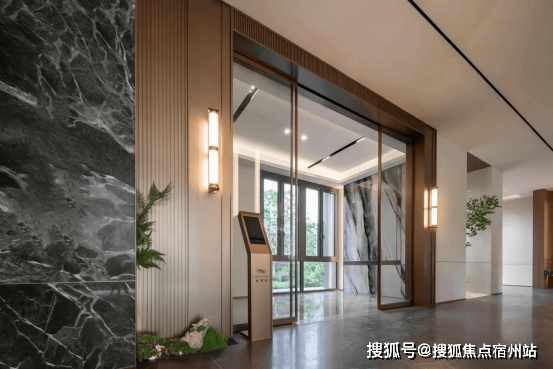 雅奢酒店式的入户大堂,巴西银河星空奢石景墙与入口仪式水景,将闲适的生活体验与高品质的追求融合一体。