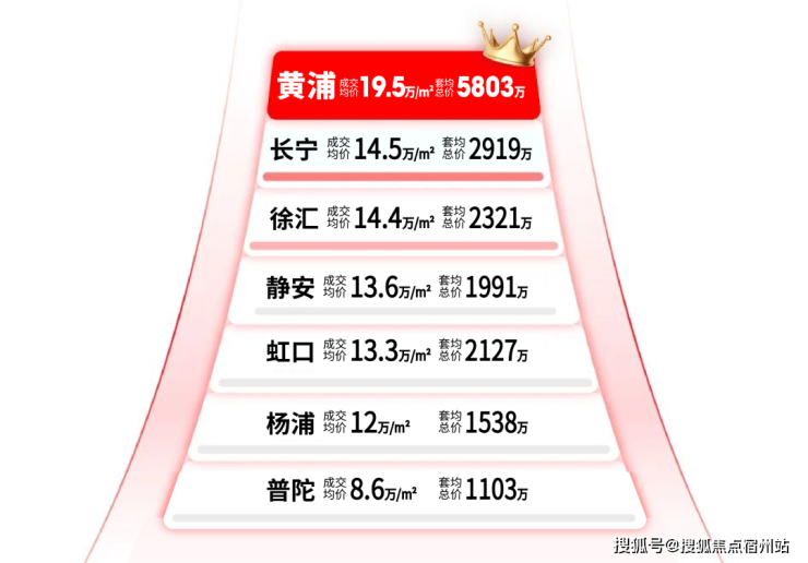 而相比这些区域,地段更加核心、圈层更加统一、资源更高能级的黄浦区中部,则将是20万/㎡+的市场。