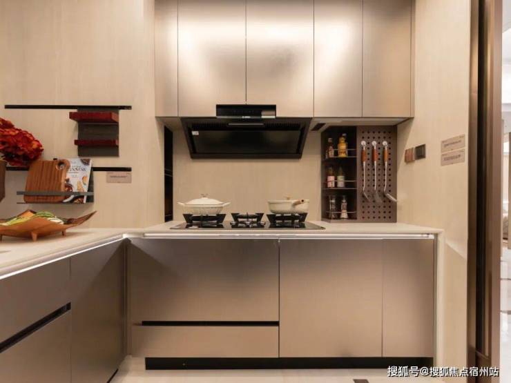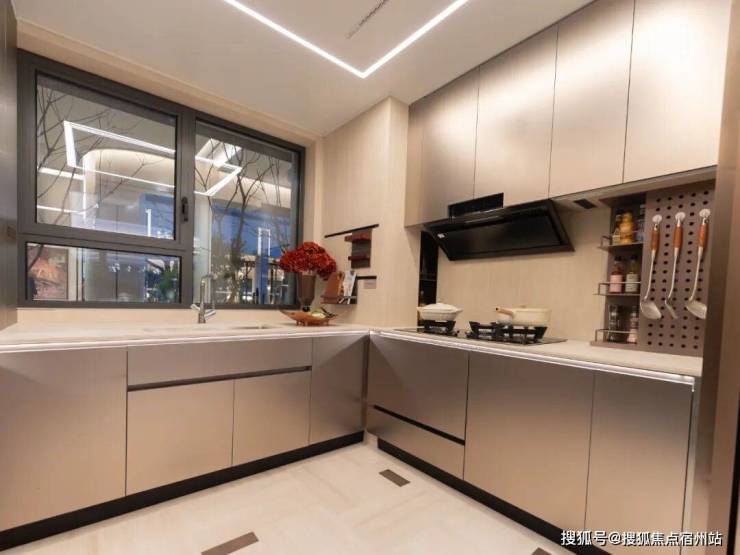 项目对厨房的考量贯穿每一处细节:采用高效的 U型布局 ,洗、切、炒动线一气呵成。