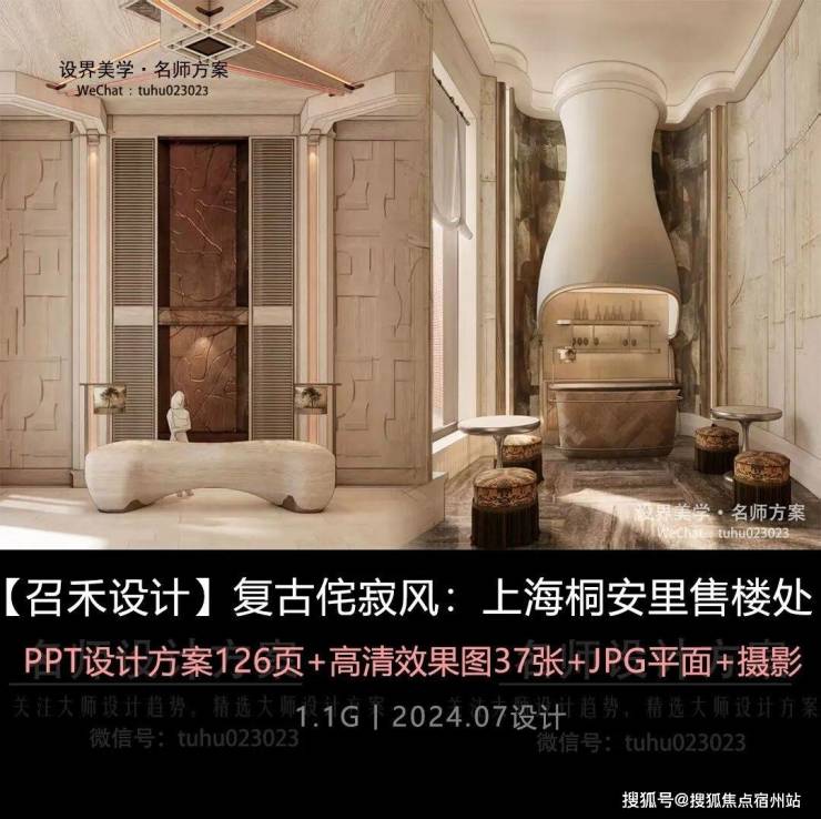 【召禾设计】复古侘寂风:上海桐安里售楼处丨PPT设计方案126页+高清效果图37张+JPG平面+摄影丨1.1G丨2024.07设计