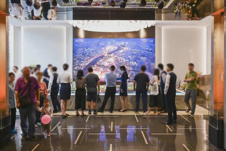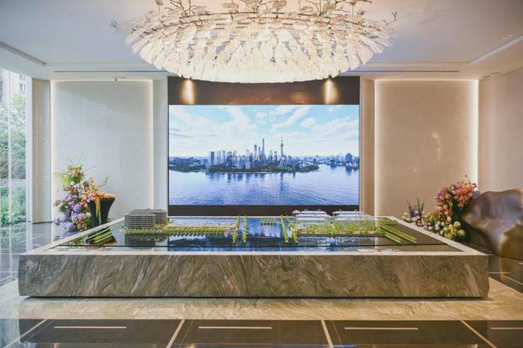 走过围挡艺术展,来到保利外滩序售楼处!“滨江花园生活馆”,映入眼帘是精奢花园门庭、镜水景观、轩朗门厅!