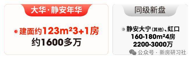 4房同样如此,市面同类产品普遍建面160-180㎡,总价2200万起步;大华·静安年华123㎡“3+1”房,总价1600多万,既满足大家庭“一步到位”的需求,又大幅降低了改善成本。