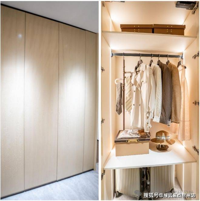 最令人惊艳的,莫过于项目将原本易被忽略的过道转化为实用收纳区——打造了少有的“过道柜”,无论日常衣物、换季的厚被子,还是不常用的生活物件,都能在此找到规整安放的位置。