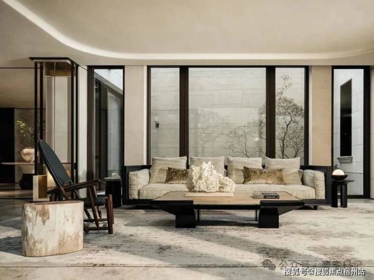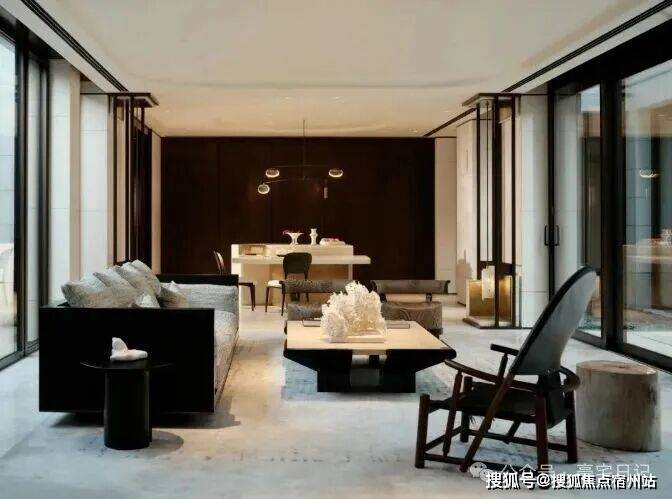 这套样板房是著名设计师吴滨设计的,他以“玉”为灵感原点,从形、色、质、韵四个维度贯穿整体,呈现出摩登东方的设计风格。