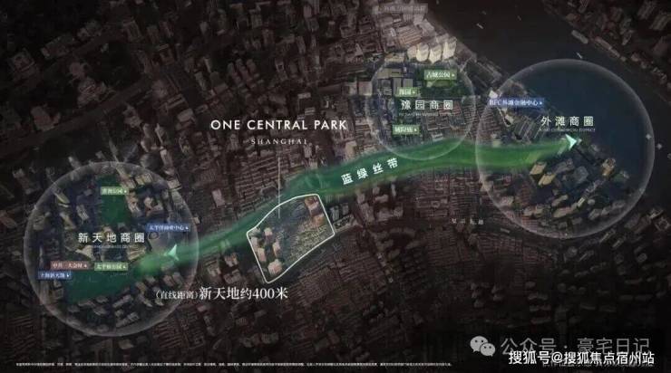 上海壹号院地处中华路与复兴东路交汇处,直线距离新天地仅400米。随着“蓝绿丝带”规划与新天地东进战略的实施,这里将成为串联新天地、豫园、外滩三大世界级版图的黄金节点。